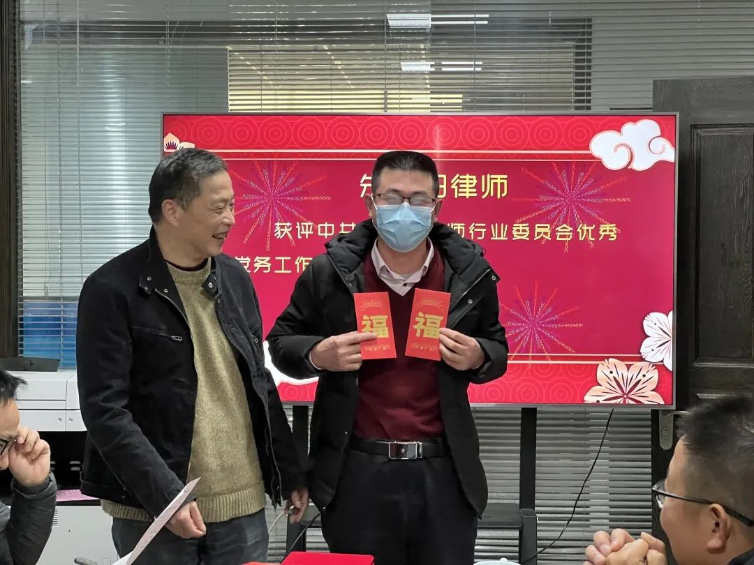 骆忠红主任首先对我所规模、营收、业务量等指标在全市所处水平进行了分析,并做了年度工作总结。同时,希望全体成员在2022年工作的基础上团结拼搏、迎难而上,进一步提高工作标准、提升案件办理质量、加强沟通协调能力,把所取得的奖励和荣誉作为新起点、新动力,继续前进,鼓励大家各尽所能、发挥所长。