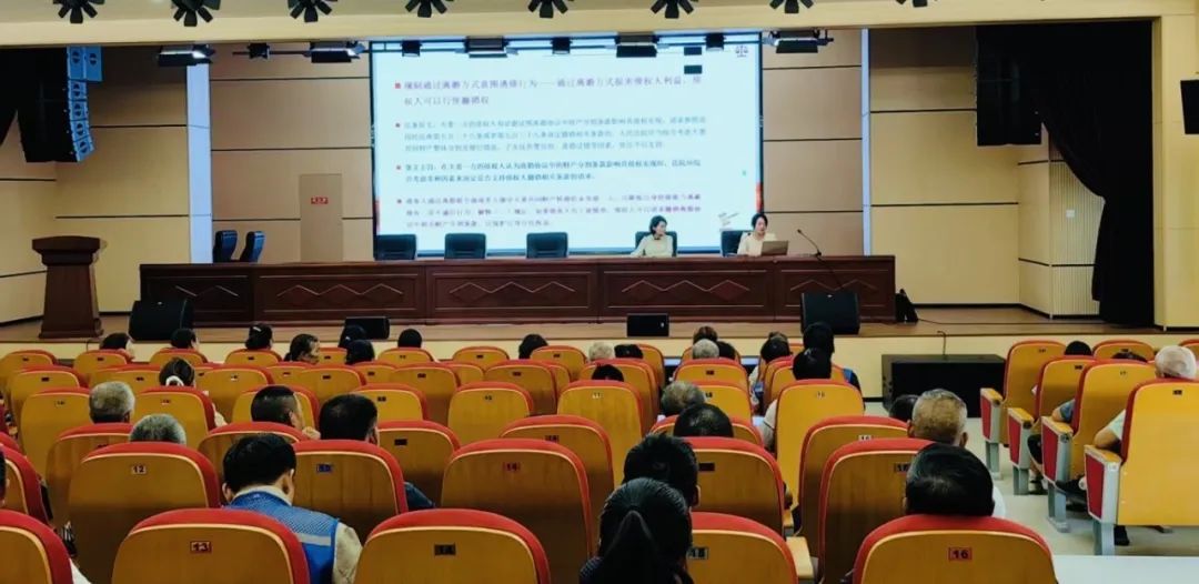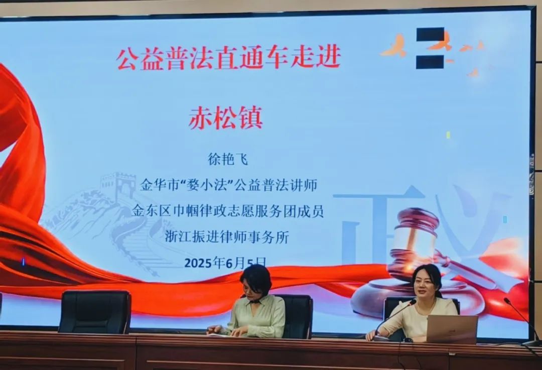 0579-82465239为深入贯彻落实《中华人民共和国民法典》宣传工作,提升基层调解员依法化解婚姻家庭纠纷的能力, 2025年6月5日上午,我所徐艳飞律师受金华市金东区司法局的邀请赴金东区赤松镇,为赤松镇网格员、调解员开展以“《中华人民共和国民法典》婚姻家庭编热点问题”为主题的普法知识讲座。