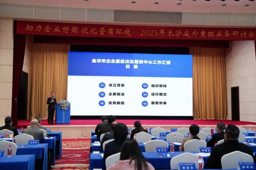 0579-824652392025年11月23日,由长沙市破产管理人协会主办的“助力企业纾困,优化营商环境——2025年长沙庭外重组业务研讨会”顺利召开。我所骆忠红主任作为浙江省破产管理人协会副会长、金华市破产案件管理人协会会长受邀参会,并在研讨会上分享了金华市企业重组法治服务中心运行情况,为各地探索庭外重组路径、化解企业债务风险传递金华经验。