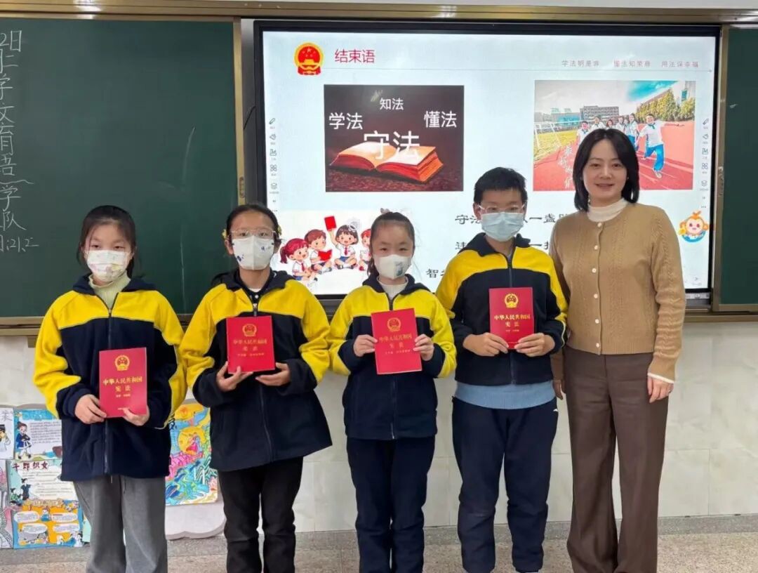 互动问答环节中,徐艳飞律师围绕宪法赋予的受教育权、文化活动自由权、人格尊严权等核心权利展开提问,同学们积极举手、踊跃作答,在思维碰撞中深化了对权利与义务的理解,法治意识也在潜移默化中得到提升。课程尾声,徐艳飞律师向同学们赠送宪法书籍,鼓励大家以书为友,主动学法、自觉守法、善于用法,在法治阳光的照耀下成长为文明有礼、遵纪守法的新时代好少年。